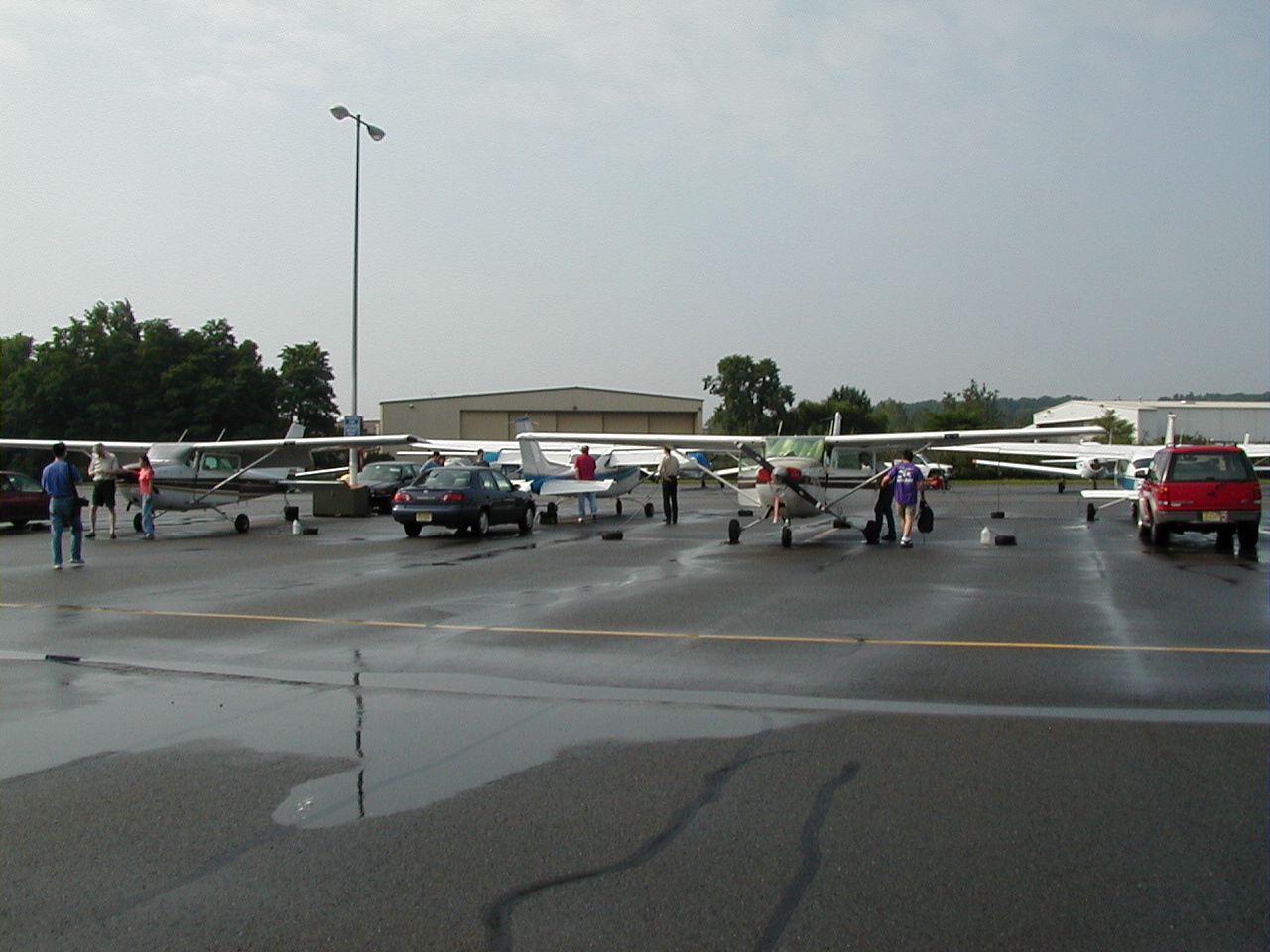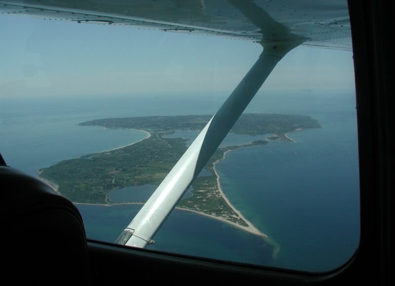 In the summer of 2003 we went to Block Island. This time, the weather was lovely; a cold front had just passed, the winds had diminished and visibility was 50 miles. We took three planes and flew to Block Island along the coast of Connecticut. After lunch on the island and walking around, we flew back using different routes; I flew back over the Long Island Sound, got flight following and cleared into the Class Bravo airspace to fly over La Guardia and Central Park (at 2000 feet) to the Hudson River. We descended into the exclusion zone, flew by `the Lady’, over the Verrazano Narrows Bridge, around Staten Island and back to Morristown. Here are some of the pictures: