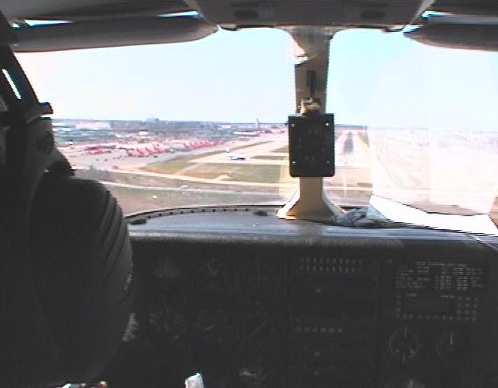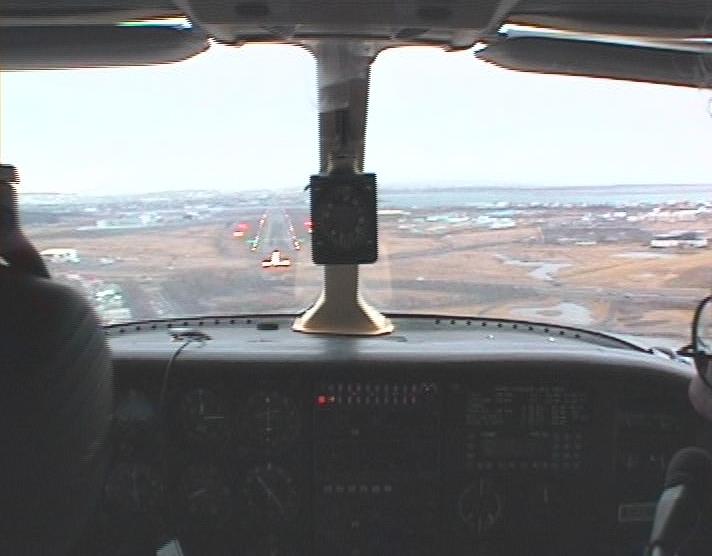 On the way to MSP we were in and out of very thin clouds or very thick haze that, for the most part, allowed us to see ground as well as sun, but no horizon. After passing Duluth, we were let down to 5000 feet where we met with the first (very light) turbulance of the trip; We were cleared for a visual approach to runway 30R at MSP, flying to it on a long base leg from the northeast to a half-mile final.